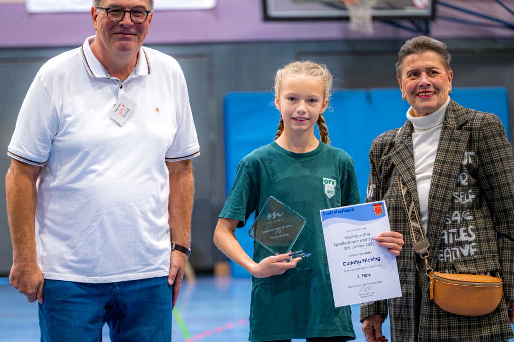 Beim "Fest des Sports" am Tag der Deutschen Einheit in der Lanker Forstenberghalle wurden die diesjährigen Sportler des Jahres der Stadt Meerbusch geehrt. Darunter befand sich auch Carlotta Pricking vom Osterather TV, die den Preis in der Kategorie "Junioren - Einzel" gewann. Die elfjährige Judoka gewann in diesem Jahr einige namhafte Medaillen für den OTV. In ihrer Gewichtsklasse (bis 33 kg) siegte Sie unter anderem bei den Nordrhein-Einzelmeisterschaften sowie bei den Stadt- und Kreismeisterschaften der U13. Außerdem erkämpfte sie sich bei zwei internationalen Turnieren Bronze.